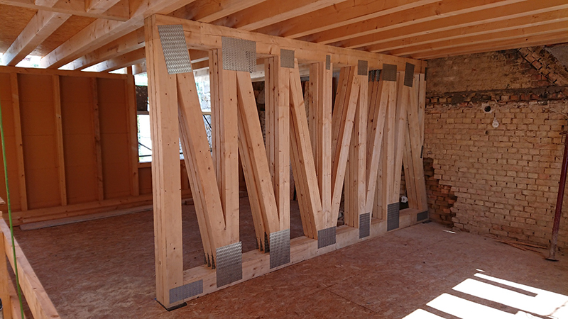 Parallelbinder werden in der Regel als Aussteifungselemente gewählt. Es werden damit die Dachebenen ausgesteift und mit Windrispenbänder zusätzlich gesichert. Parallelbinder können aber auch als Aussteifung für die Deckenebene genutzt werden (Deckenscheiben). Parallelbinder können als Wände, Über- oder Unterzüge eingesetzt werden.