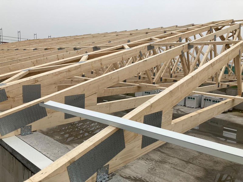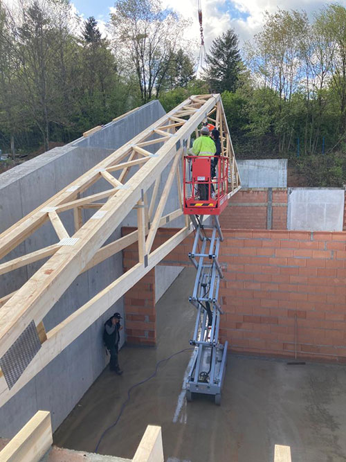 Für eine wirtschaftliche Logistik können die Binder bei Bedarf geteilt angeliefert und vor Ort montiert werden. Dadurch bleiben Transportwege effizient und die Montagezeiten kurz. Der Satteldachbinder bietet somit eine durchdachte Kombination aus Stabilität, Flexibilität und Kosteneffizienz.