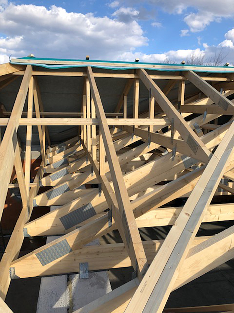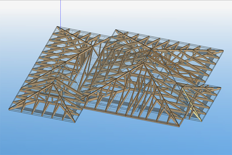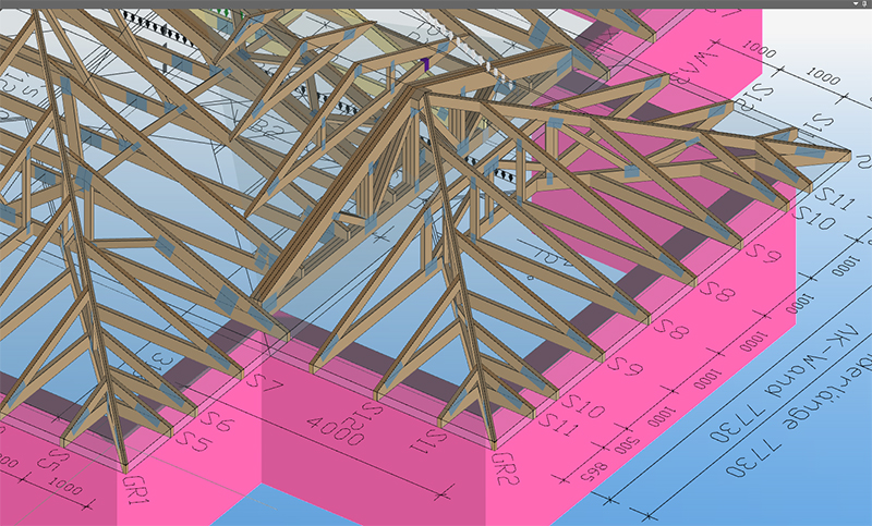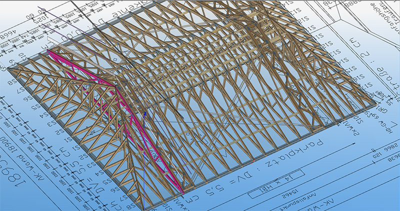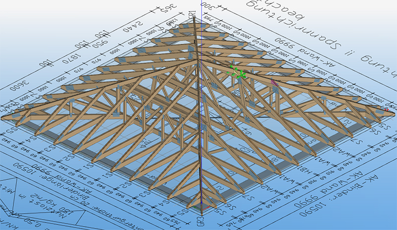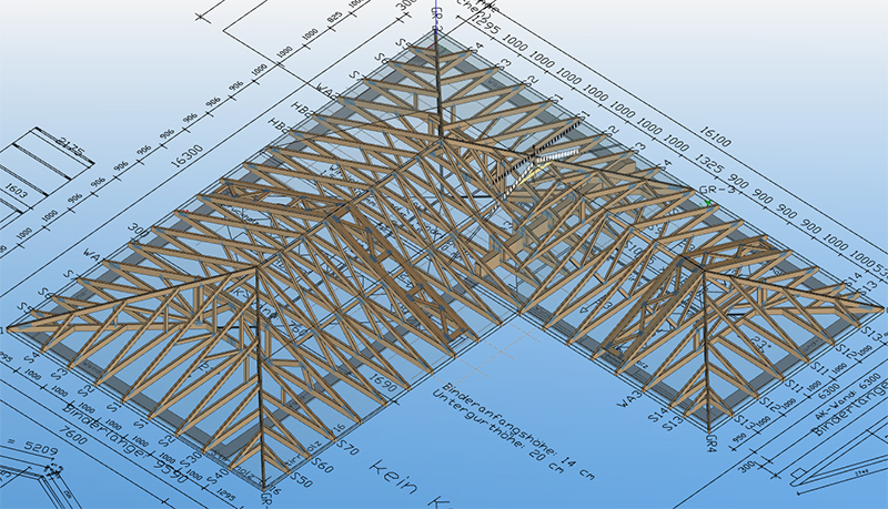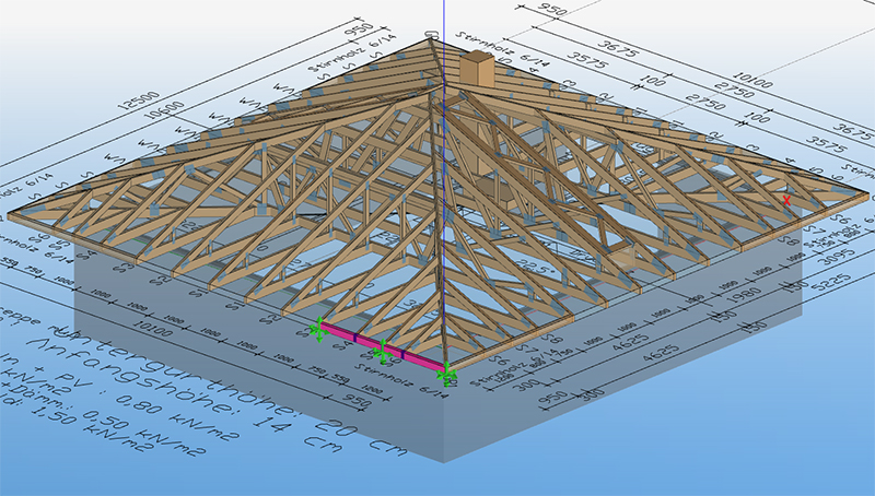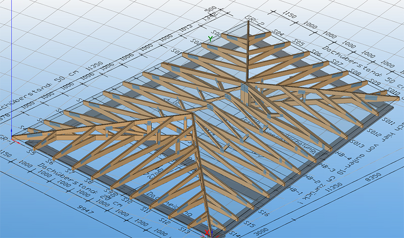 Bei den Walmdächern liegt der unschlagbare Vorteil darin, dass die Betondecke eingespart werden kann. Die verschiedenen "Dachlandschaften" sind hier möglich. Mit unserem 3-D Programm können die verschiedensten Dachformen exakt dargestellt und gleichzeitig statisch berechnet werden. Im mittleren Bereich der Dächer wird meist, eine Zusatzlast, für eine Abstellfläche gewählt. Mit der Montageanleitung, Verlegeplan und 3-D Ansichten ist das Montieren der Binder problemlos möglich.
